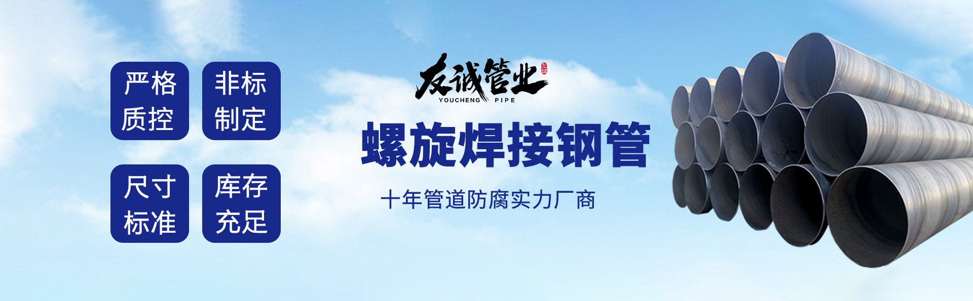 滄州友誠管業(yè)有限公司是一家專業(yè)從事生產防腐涂塑管道及管件于一體的大型企業(yè)。公司注冊資金8600萬元,位于中國管道生產基地—河北鹽山縣,近靠京滬高速、榮烏高速、黃石高速30公里,高鐵滄州西站40公里,天津國際機場、濟南遙墻機場150公里,為客戶來訪及業(yè)務發(fā)展提供了便利的交通條件。 鋼管系列:螺旋鋼管、無縫鋼管、ERW直縫焊管、JCOE埋弧焊直縫鋼管、熱鍍鋅鋼管。 涂塑系列:內外涂塑鋼管、涂塑復合鋼…… 了解更多
